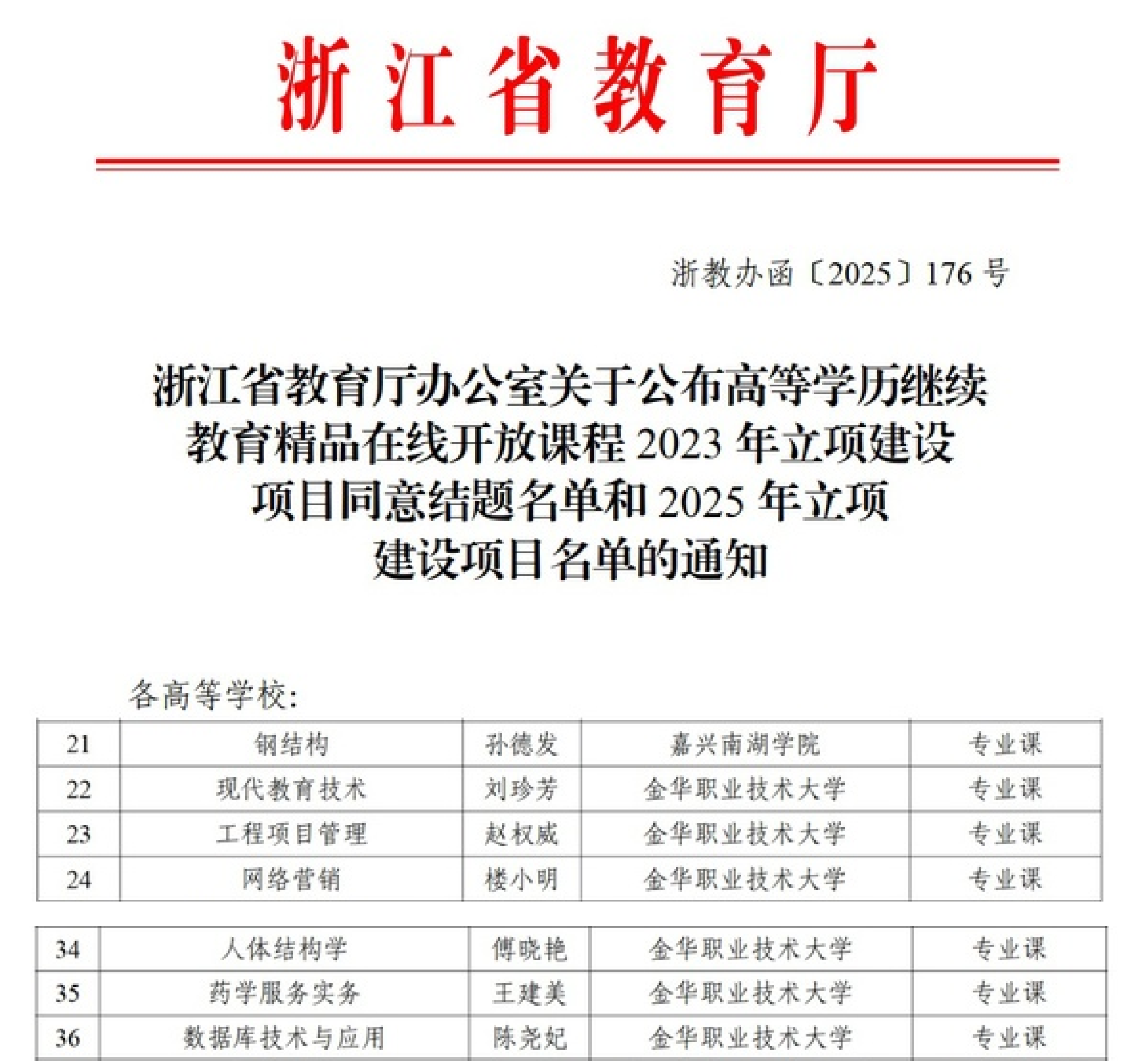 本次通过结题的2023年省级高等学历继续教育精品在线开放课程为《现代教育技术》、《网络营销》、《工程项目管理》三门课程,这些课程紧密对接行业需求,注重实践技能与理论融合,已在教学实践中获得良好反响。新获批的2025年立项课程《数据库技术与应用》、《人体结构学》、《药学服务实务》,则进一步聚焦数字经济、健康产业等前沿领域,展现了学校持续优化学科布局、响应社会人才培养需求的积极动向。
