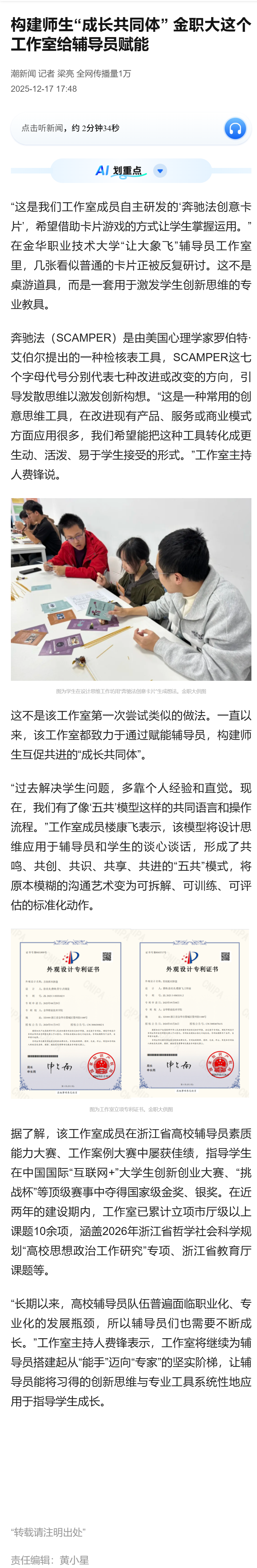 潮新闻:构建师生“成长共同体” 18luck新利官网利这个工作室给辅导员赋能
