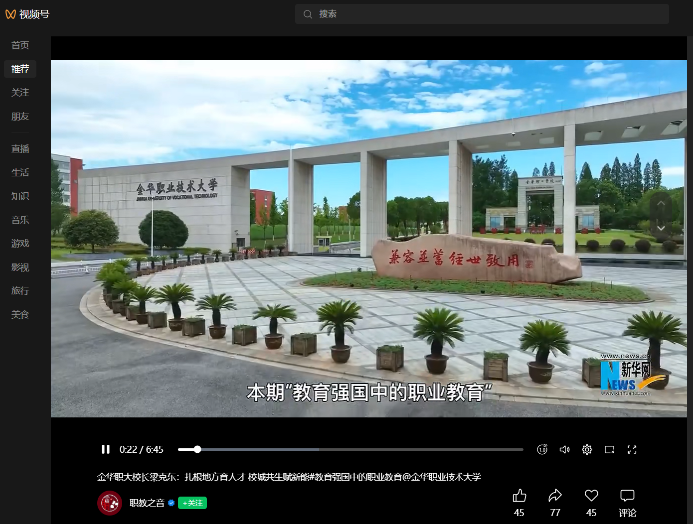18新利手机官网视频号:金华职大校长梁克东:扎根地方育人才 校城共生赋新能#教育强国中的职业教育@18luck新利官网登录