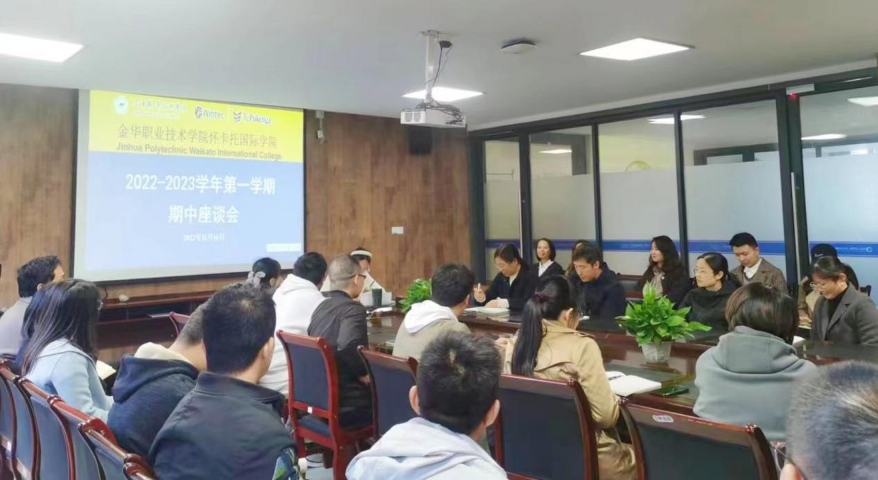 为进一步了解我院助教老师们工作情况,怀卡托国际学院于11月16日中午,在东实训楼北楼216会议室召开国际学院期中助教座谈会。怀卡托国际学院教学副院长花有清、专职副院长黄利全,教科办、合作事务办工作人员以及助教代表共计30余人参加了会议。