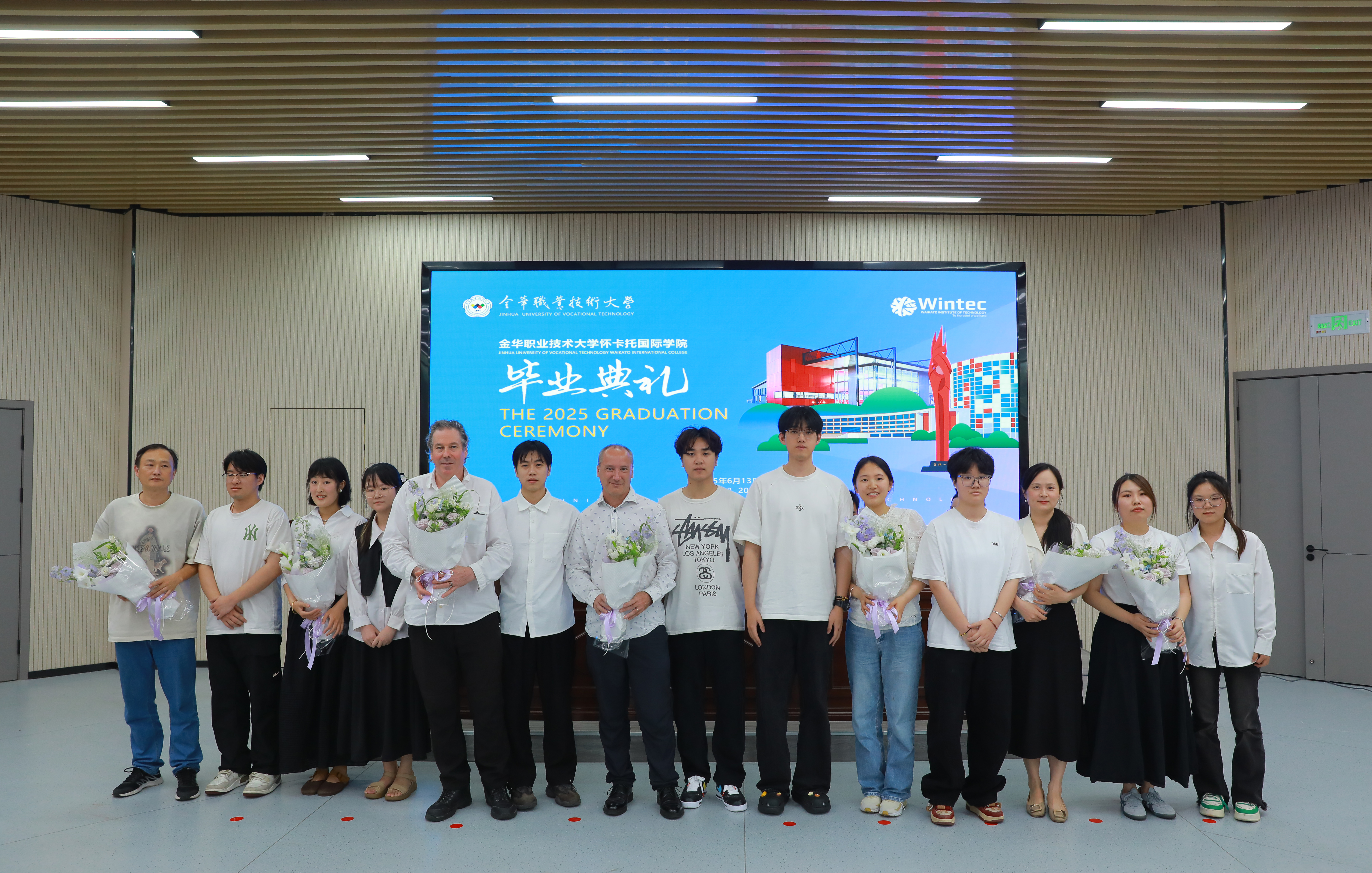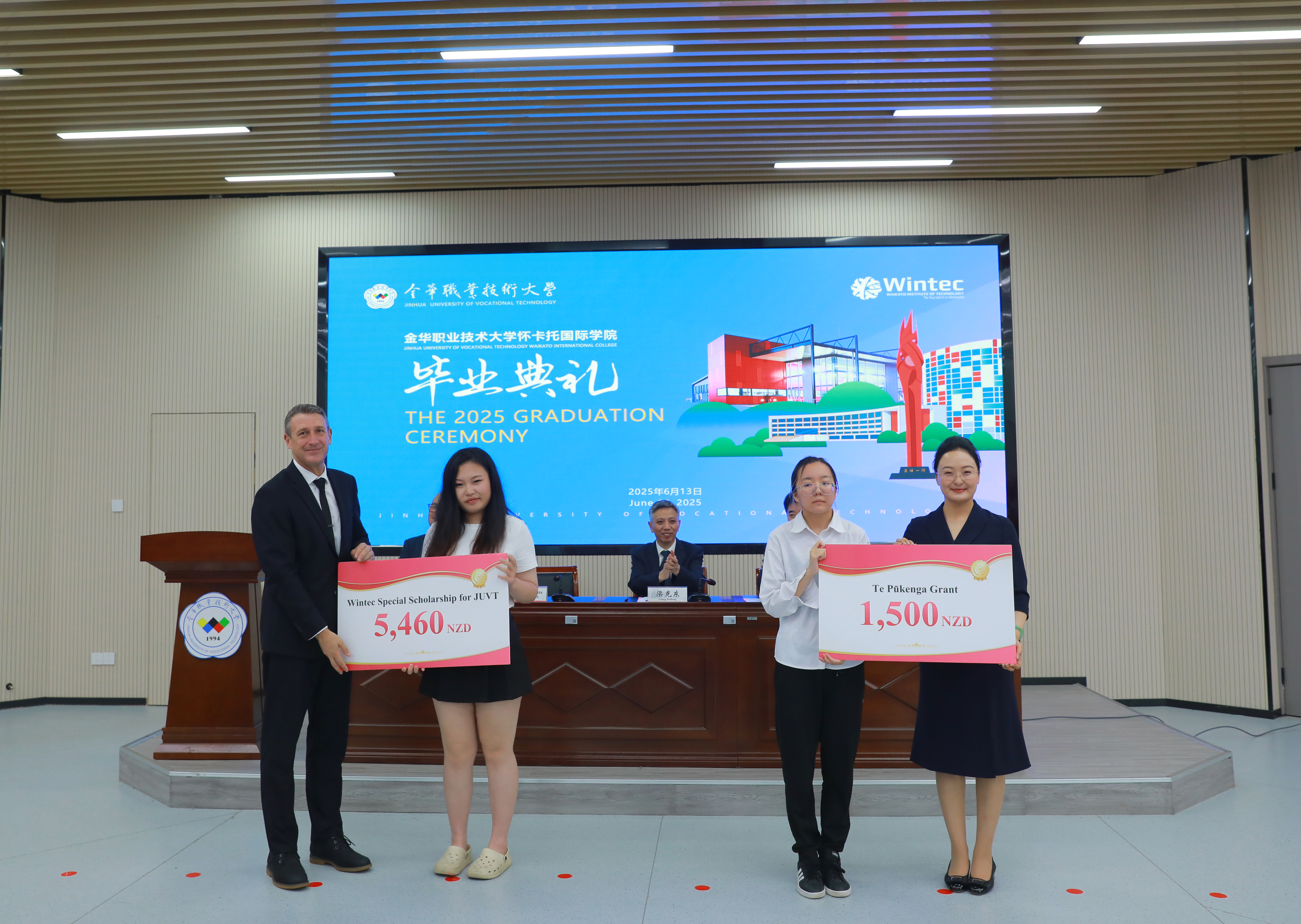梁克东与皮茨共同为2025届毕业生颁发了毕业证书。随后,皮茨与张恩宁共同为2名即将前往新西兰怀卡托理工学院留学的优秀毕业生颁发了留学奖学金,鼓励他们继续深造,拓展国际视野。毕业生代表向辛勤付出的班主任和外教代表献上鲜花,表达深深的感恩之情。